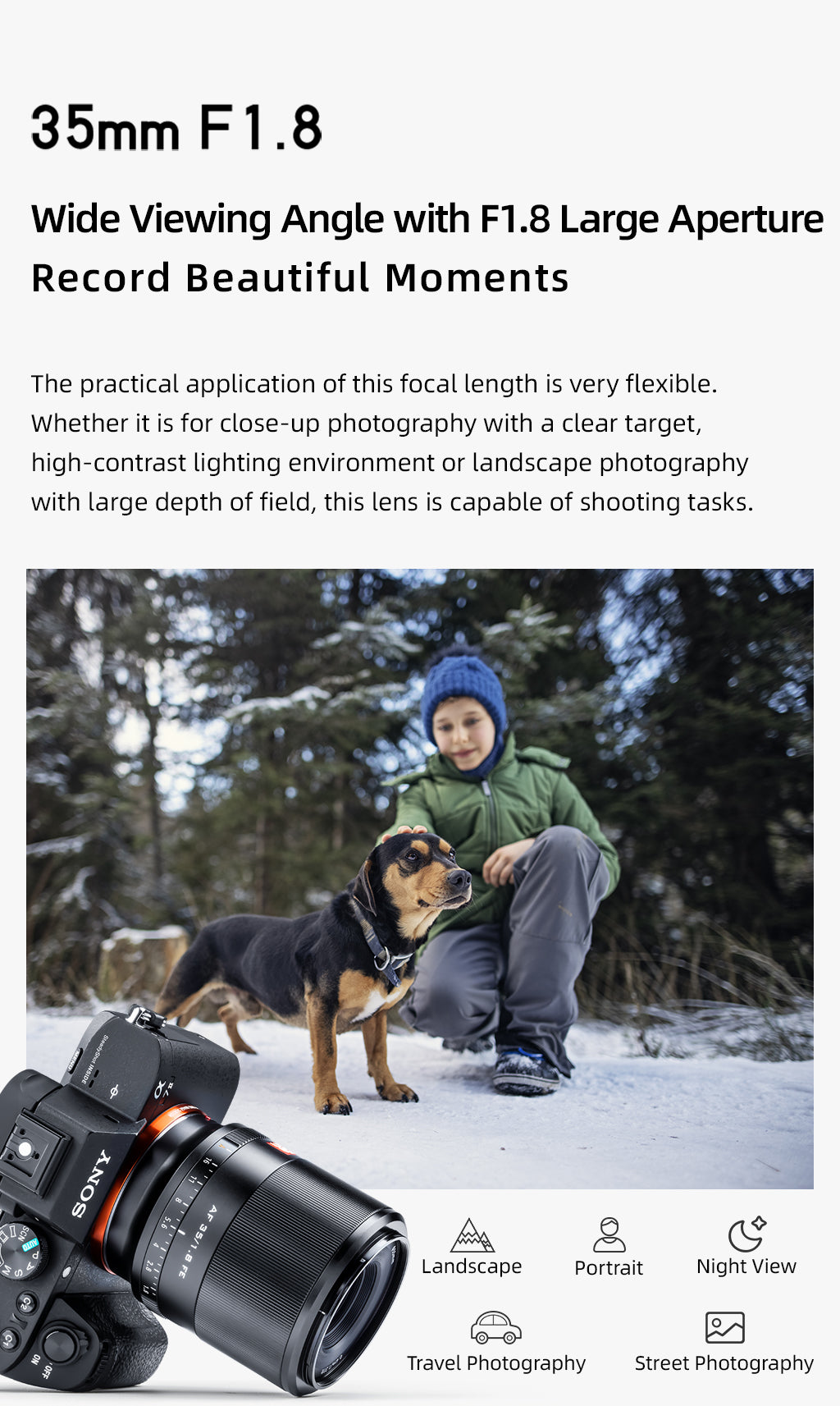 A Sony E-bajonettes tükör nélküli fényképezőgépekhez (A7-től A9II-ig; FF érzékelős fényképezőgépekhez optimalizált) széles látószögű objektív csúcskategóriás konstrukcióval rendelkezik (10 lencsetag 8 csoportban, 9 lencsetag), beleértve 2 ED, 2 HR és 2 aszférikus lencsét, valamint HD Nano bevonatot a kromatikus aberráció…