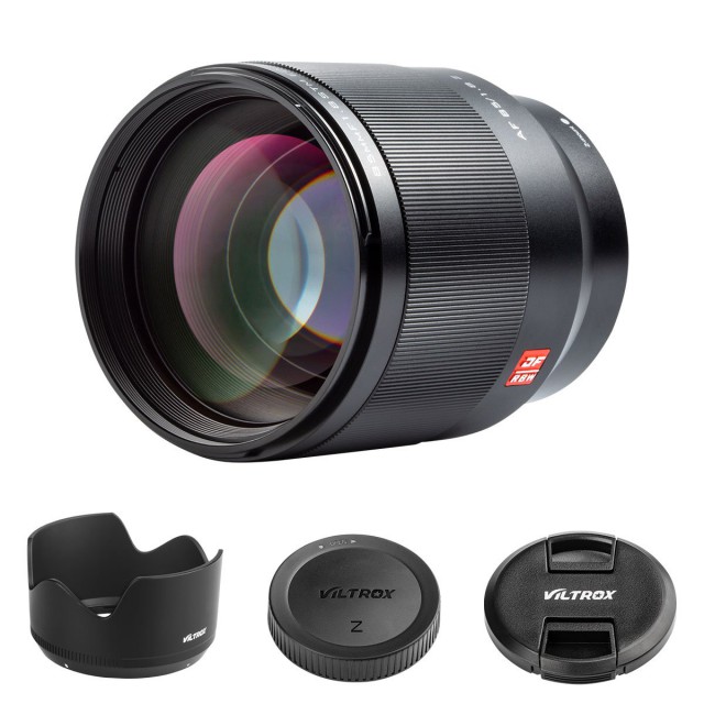 A népszerű Viltrox 85 mm f/1,8 objektív Nikon Z változata Fuji X és Sony E foglalathoz. Ez a fényerős, fix fókusztávolságú objektív éles képet biztosít minimális képhibákkal, tiszta képeket, jó kontrasztot és színvisszaadást biztosít, köszönhetően az ELD elemet használó konstrukciónak, valamint az összes lencsén található többrétegű bevonatnak. Az objektív gyors és csendes STM autofókusz-motorral (kompatibilis a Nikon Eye-AF technológiával), 72 mm-es szűrőmenettel, kilenc lamellás rekesszel és 80 cm-es minimális fókusztávolsággal rendelkezik. Súlya 540 g.