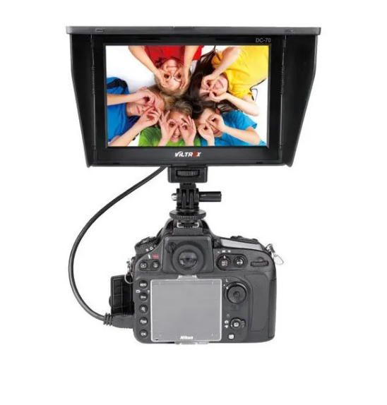 A Viltrox DC-70II 7 hüvelykes HDMI kameramonitor megbízható, professzionális megfigyelést biztosít kompakt és hordozható kivitelben, amely stúdióban és kültéri felvételekhez egyaránt alkalmas. 1024 × 600 IPS LCD kijelzőjével tiszta élőképet biztosít a kameráról, széles látószöggel és nappali fényben is jól látható. A monitor teljes méretű HDMI-bemeneten keresztül akár 1080p Full HD videót is támogat, valamint AV-bemenettel is rendelkezik, és HDMI-átviteli kimenettel is ellátott, amelynek segítségével a videó további kijelzőre is továbbítható.