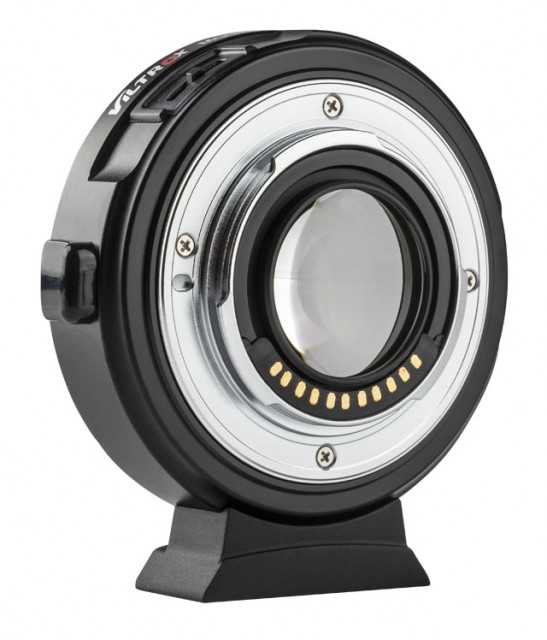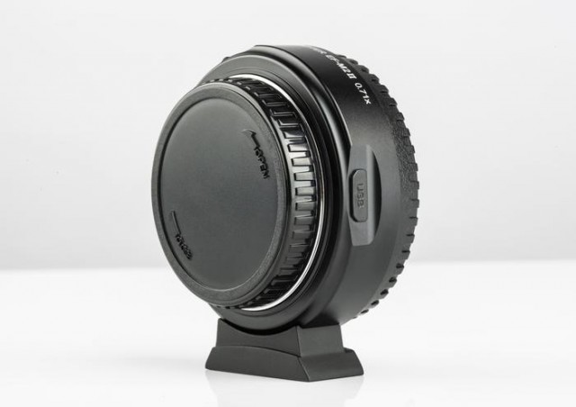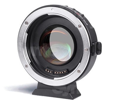 Ez a Viltrox "Speed Booster 0.71x" nem csak az MFT bajonettet adaptálja Canon EF objektívekhez, hanem csökkenti az objektívek gyújtótávolságát (0.71x) és növeli a rekeszértéket (akár egy rekeszszámmal). Ezen kívül 1/4"-os menetet kínál a fényképezőgép ketrecekhez és az AF-tartókhoz. 67x25 mm-es méretek, súly 85 g