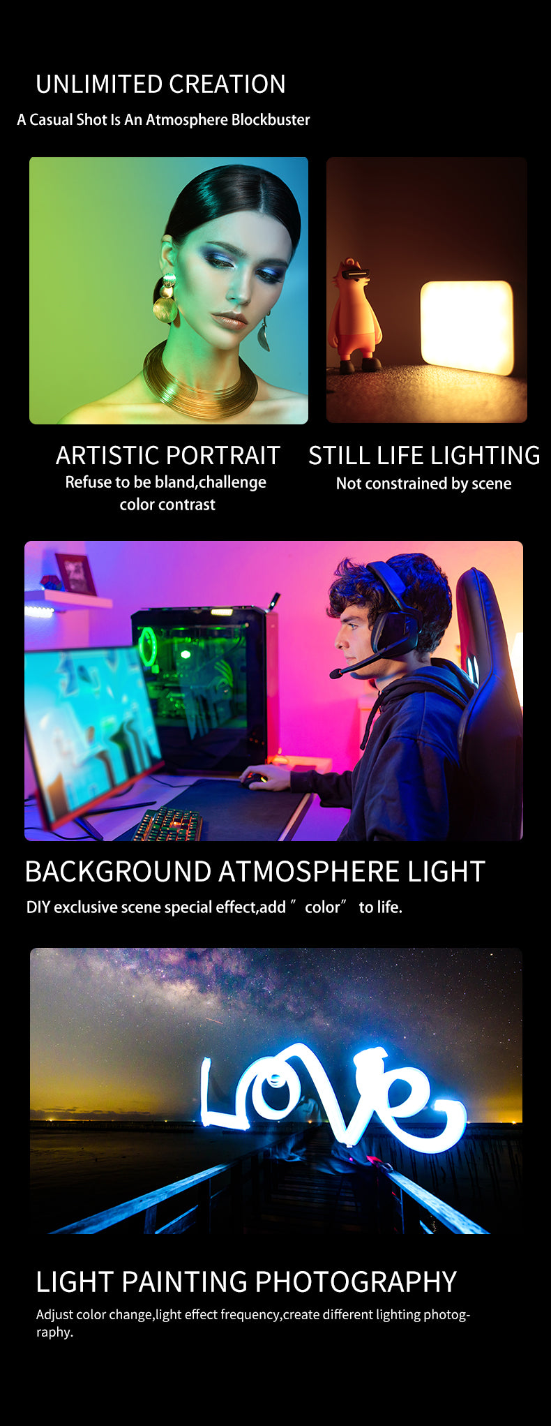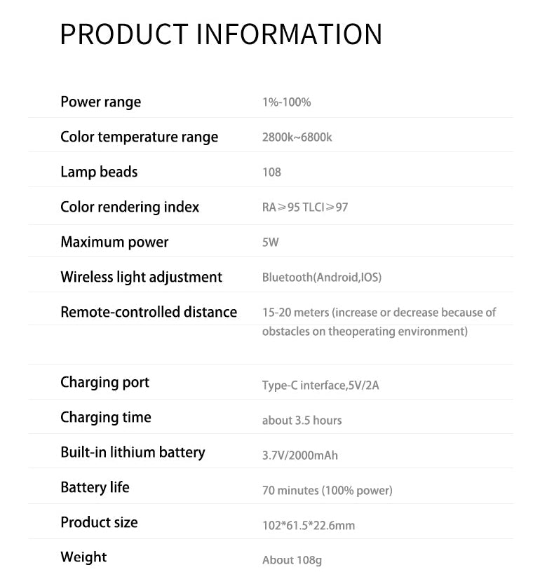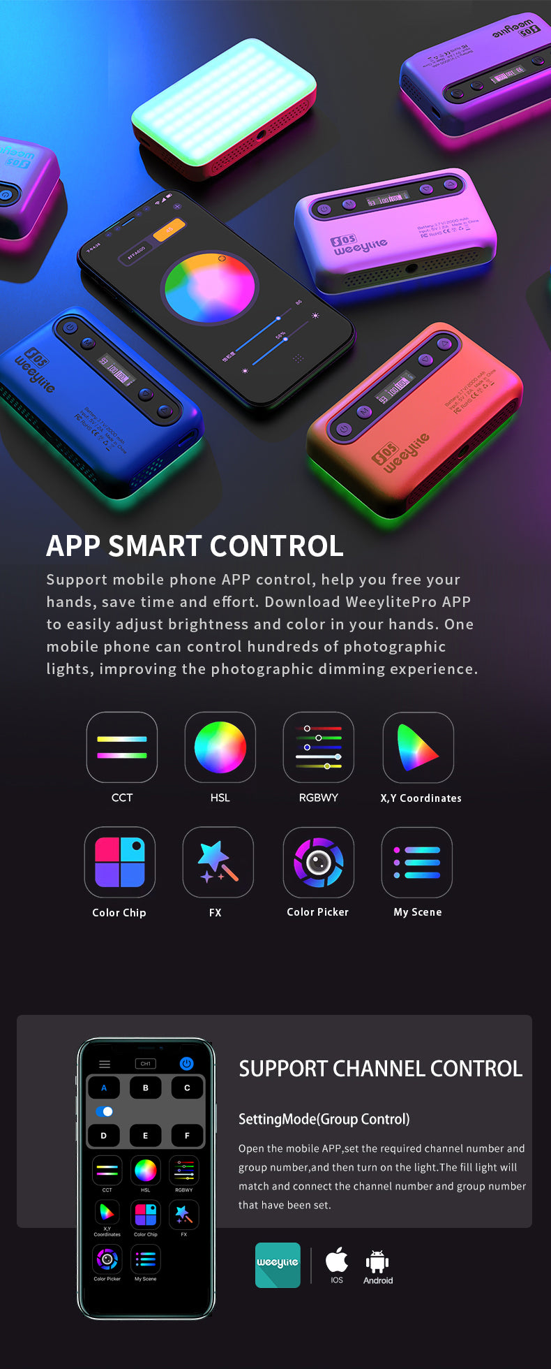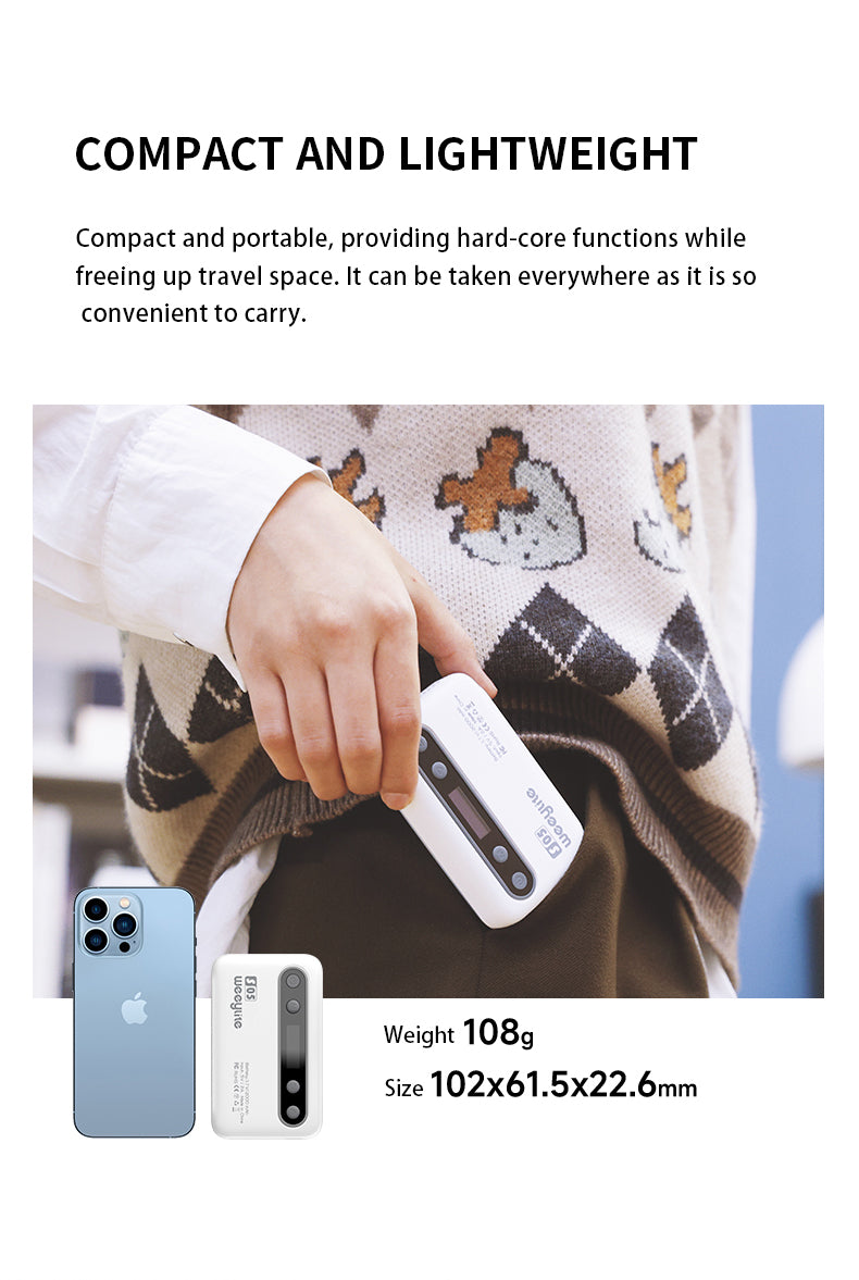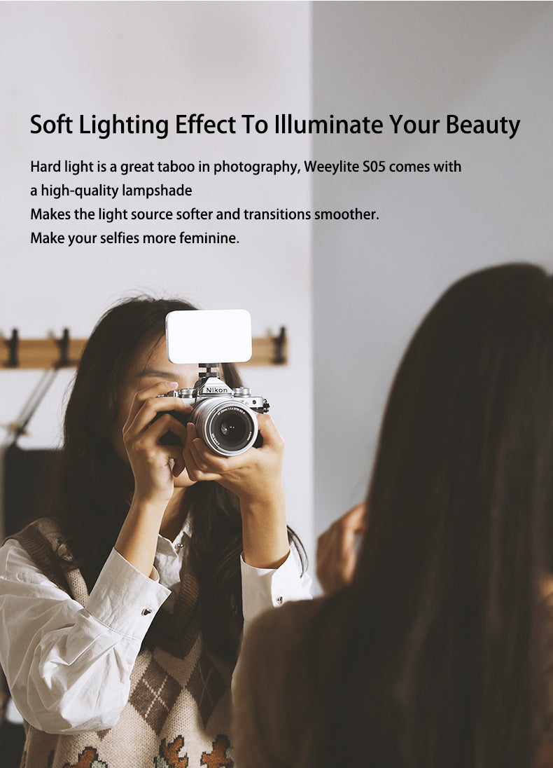 A Weeylite S05 töltőfény egy hordozható zsebkitöltő fény.Többféle magas színű (pozitív fehér + meleg fehér) és kiváló minőségű RGB fénygyöngyök vannak. Előnye az alacsony energiafogyasztás, a stabil színhőmérséklet, az energia- és energiatakarékosság, a hosszú élettartam, a kompakt méret és a kényelmes hordozás.Különböző jelenetekben fogadható el, és tökéletesen használható fotózásban, videóban, vlog felvételben, élő adásban és így tovább.