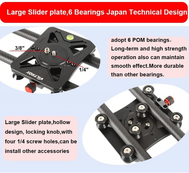A Viltrox VC80 szénszálas síncsúszka többféle kamerafeszítési lehetőséget tesz lehetővé, és biztosítja a berendezés sima és stabil mozgását. A könnyű, rázkódásmentes csúszka akár 22 kg-ot is elbír, és a csúszka lemezén egy 3/8"-16-os csavar található a kamera vagy gömbfej rögzítéséhez. Négy állítható lábbal rendelkezik, amelyekkel a csúszka a padlóra vagy egy asztalra helyezhető. A csúszka 1/4"-20 és 3/8"-16 csavarfuratokkal rendelkezik az alján, valamint 1/4"-20 csavarfuratokkal mindkét végén a vízszintes és függőleges rögzítési lehetőségekhez. A további kényelem érdekében egy hordtáska is jár hozzá.