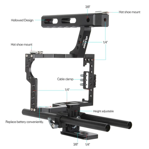 A VX-11 alumíniumötvözetből készült videóketrec szép választás, hogy a felvételek tökéletesebbek és könnyebbek legyenek. Több tucat szabványos 1/4" és 3/8" csavarfurattal és 2 hot shoe rögzítővel rendelkezik, amelyek segítségével könnyedén elhelyezheti a videós tartozékokat! Engedje szabadjára kreativitását.