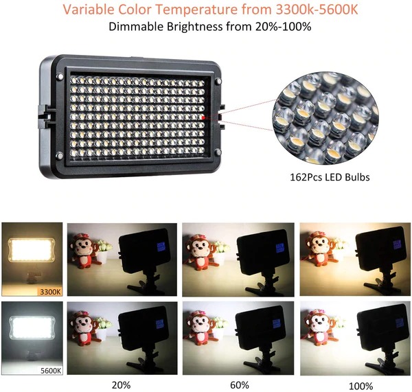 Dimmelhető és színes üzemmódok funkció: (20%-100%) és változtatható színhőmérséklet (3300K-5600K) a videók vagy képek feldobásához. A 4 mellékelt szűrő mágnessel könnyen felszerelhető a kreatív, különböző fényszíneket eredményező hatásokhoz.