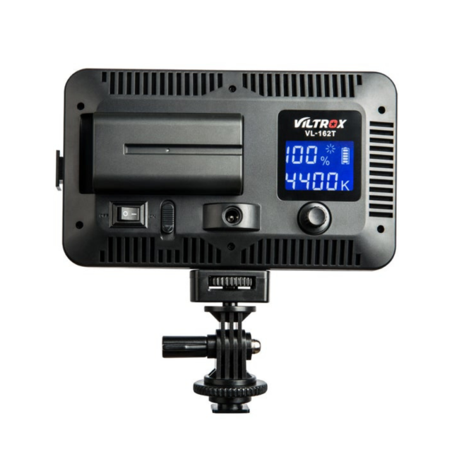 Beépített LCD kijelző: Az LCD-panel mutatja az akkumulátor töltöttségét, fényerejét és a színhőmérsékletet, így könnyen kezelhető és hatékonyabban dolgozhat.