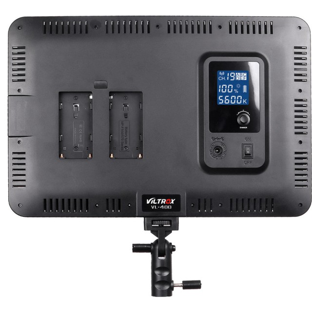 Két darab Viltrox VL-400T lámpából álló készlet. Könnyen hordozható 40 W-os, kétszínű LED-es lámpa állítható színhőmérséklettel (3300-5600K tartományban) és intenzitással (20-100%; max. 2900 lm, 2800 lx/0,5 m). Lehetőség van vezeték nélküli távirányításra (2,4 GHz, a távirányítót tartalmazza), valamint akkumulátoros (NP-F550 / F570 / F960 / F970, az akkumulátor nem tartozék) vagy külső tápegységgel (tartozék) történő tápellátásra. A paraméterek beállítását megkönnyíti a könnyen leolvasható LCD-kijelző. Méretek 360x240x25 mm, súly 1080 g.