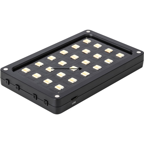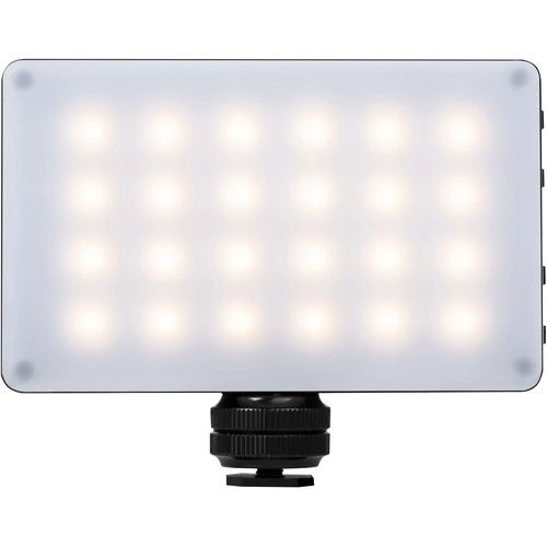 Kamerás LED-lámpa 24 kétszínű LED-del, 2 500-8 500 K színhőmérséklet-tartományban és beépített akkumulátorral (Micro USB-csatlakozón keresztül újratölthető; a lámpa töltés közben nem használható; az akkumulátor élettartama kb. 1,2 óra 100%-os intenzitással és 5600 K színhőmérséklettel). A beépített OLED-kijelzőn a színhőmérséklet, a fényerő (10-100% között szabályozható villogás nélkül) és az akkumulátor állapota látható. Természetesen az 1/4"-20-as menet, valamint a mellékelt vaku aljzatszűkítő és a mellékelt diffúzor is a tartozék.