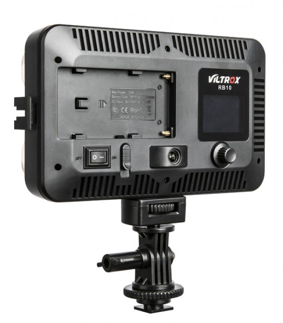 A Viltrox RB10 LED-es lámpa 128 kiváló minőségű fehér LED-del (64x 3300 K + 64x 5600 K), valamint 14 RGB LED-del van felszerelve, amelyek alacsonyabb energiafogyasztással és stabil színhőmérséklettel rendelkeznek. Alacsony súlyának (220 g akkumulátor nélkül), kis méretének (168x98x32 mm) és az akkumulátoros tápellátás támogatásának köszönhetően. A fényerő (20~100%) és a színhőmérséklet (3300~5600K) szabályozható; az intenzitás kb. 2300 lx (0,5 m-en) és 600 lx (1 m-en). Sugárzási szög 60° (fehér LED) és 120° (RGB), színvisszaadási index Ra≥95 (fehér LED esetén). Külső tápegység 8V~15V=/10W áll rendelkezésre.