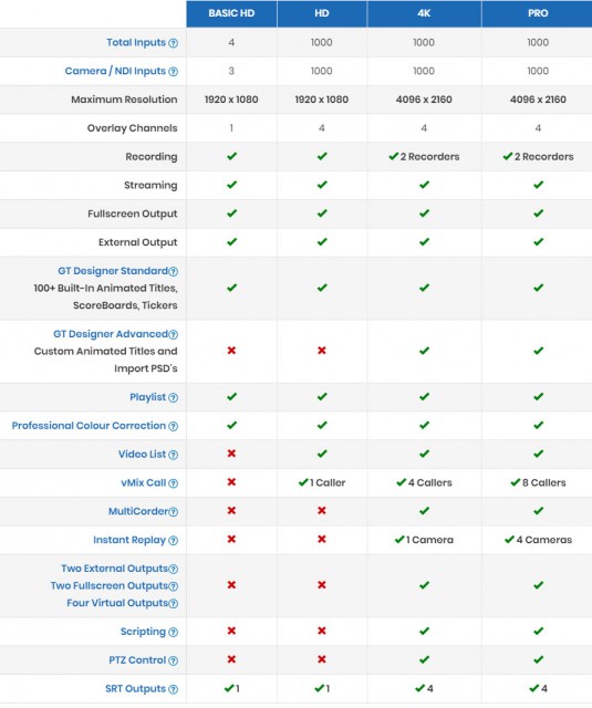 A vMix rendszer számos többkamerás eseményhez vagy egykamerás termékhez használható. Nem kell éves szoftverlicenc díjat fizetni, mint néhány konkurens termék esetében. A vMix megvásárlásával 12 hónapig ingyenes frissítéseket is kap. Ezt követően (12 hónap) maradhat a vMix legújabb verziójánál, vagy egy kis díj ellenében (frissítés) megvásárolhatja a vMix legújabb verziójára való frissítés lehetőségét a legújabb frissítésekkel.