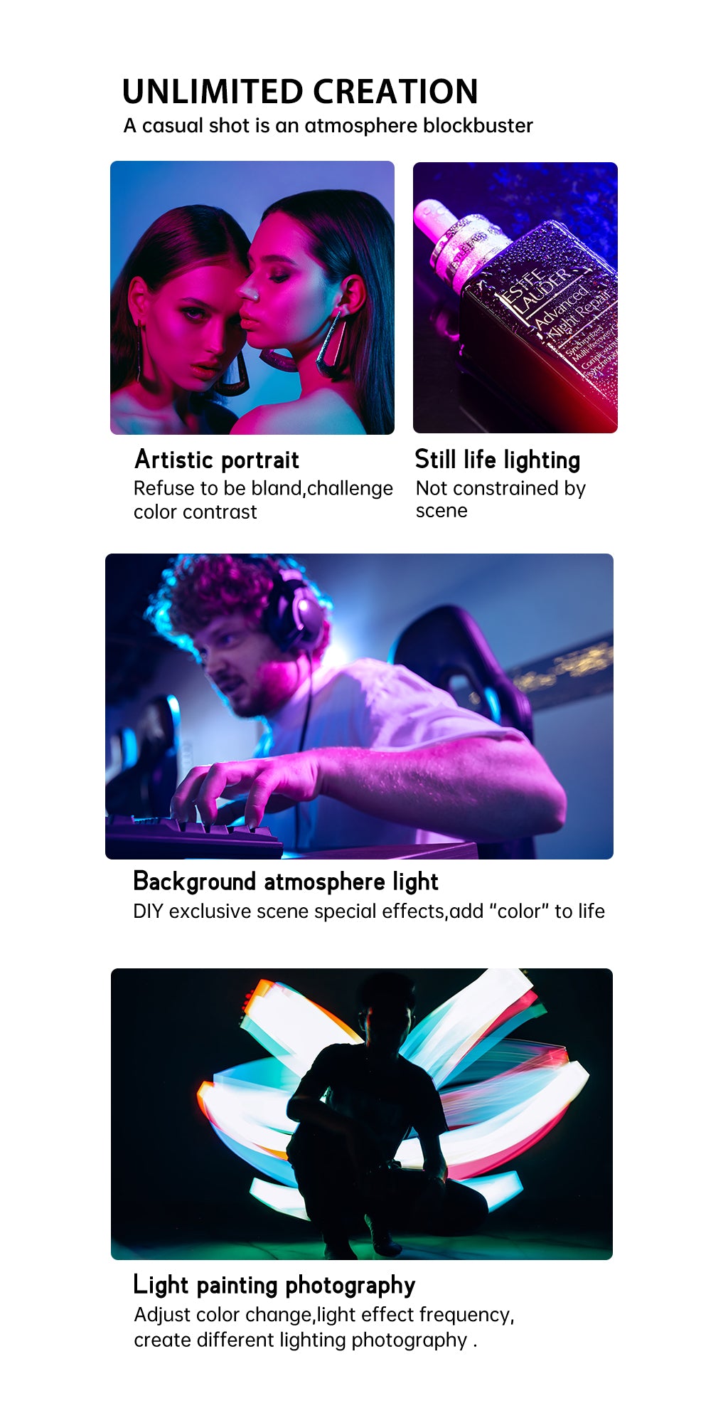 A Weeylite S03 egy hordozható lámpa. Többféle színű (Hideg fehér + meleg fehér) és kiváló minőségű RGB színekkel rendelkezik. Előnye az alacsony energiafogyasztás, a stabil színhőmérséklet, a hosszú élettartam, valamint a kompakt méret. Különböző jelenetekben fogadható el, és tökéletesen használható fényképezéshez, video- és vlog-felvételhez, élő közvetítéshez…
