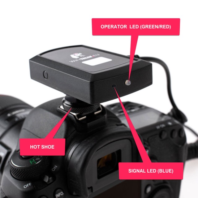 A WiFi Tally light micro két LED-et tartalmaz. Ez az egyik kék színű, hogy jelezze a kapcsolatot vagy az elvesztését. A második LED tájékoztatja a kamerakezelőt (operatőrt) a felvétel állapotáról. Ha a fő LED zöld színű, akkor a felvétel előkészítés alatt áll, ha pedig piros, akkor a felvétele adásba kerül. Ez színben megfelel az összes video overhead szokásos kialakításának.