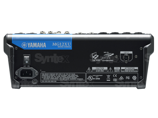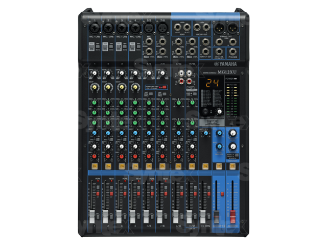A Yamaha MG12XU egy kompakt keverőpult tizenkét bemenettel. A keverő négy mono mikrofon/line kombó bemeneti csatornával, két sztereó line bemeneti csatornával, amelyek mono mikrofon- vagy line bemenetként is használhatók (XLR és sztereó 1/4" bemenetek), valamint két sztereó line bemenettel rendelkezik 1/4" és RCA csatlakozókkal. USB-csatlakoztathatósággal is rendelkezik, és két bemeneti és két kimeneti csatornát képes biztosítani a számítógép számára akár 24 bit/192 kHz-en, így ideális élő előadások, demófelvételek és egyéb felvételek rögzítéséhez.