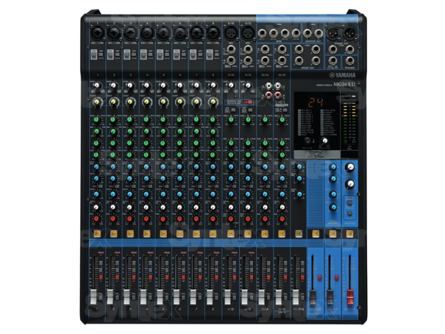 A Yamaha MG16XU egy kompakt keverőpult tizenhat egyidejű bemenettel, amely ideális előadásokhoz, előadások rögzítéséhez és sok minden máshoz. A keverő nyolc mono mikrofon/line combo bemeneti csatornával, két sztereó line bemeneti csatornával, amelyek mono mikrofon- vagy line bemenetként is használhatók (XLR és sztereó 1/4" bemenetek), valamint két sztereó line bemenettel rendelkezik 1/4" és RCA csatlakozókkal. USB-csatlakoztathatósággal is rendelkezik, és két bemeneti és két kimeneti csatornát képes biztosítani a számítógép számára akár 24 bit/192 kHz-en, így ideális élő előadások, demók és egyéb felvételek rögzítéséhez.