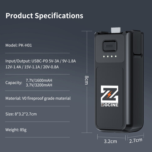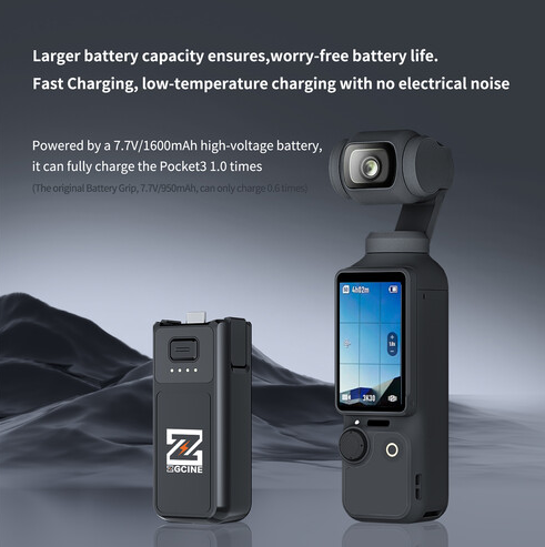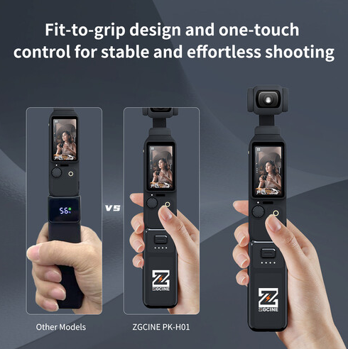 A ZGCINE PK-H01 akkumulátor markolat az első harmadik féltől származó, kódolt akkumulátor markolat, amelyet a DJI Osmo Pocket 3 készülékhez terveztek. Kompakt és hordozható, hosszabb akkumulátor-élettartamot, gyors töltést és kényelmes adatátvitelt biztosít közvetlenül a számítógépére.