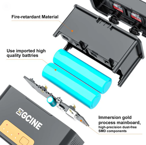 A ZGCINE GoPro akkumulátortöltő tok (PS-G10 MINI Kit 2) egy kompakt és hatékony töltési megoldás GoPro akkumulátorok számára. Tartalmaz egy töltőtáskát és két 901-es akkumulátort, amely meghosszabbított energiát biztosít akciókamerás kalandozásaihoz.