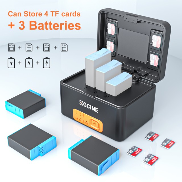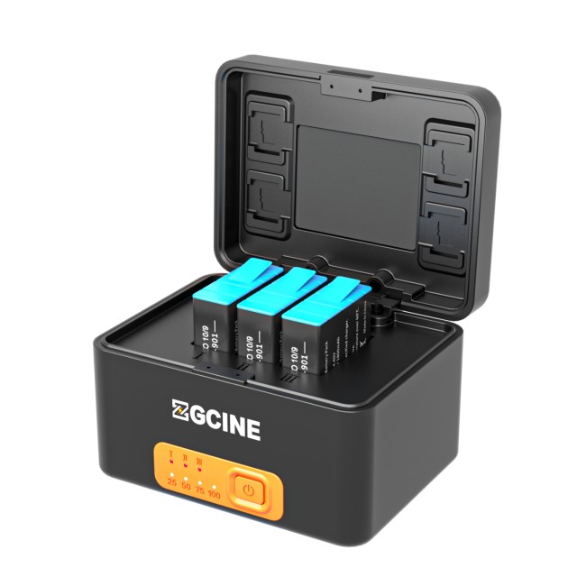 Tartsa GoPro akkumulátorait feltöltve és készenlétben a ZGCINE GoPro akkumulátortöltő tokkal. Ez a kompakt és nagy kapacitású töltőtáska 10 400 mAh beépített akkumulátorral rendelkezik, amely lehetővé teszi, hogy akár három GoPro 901 vagy 801 sorozatú akkumulátort bármikor és bárhol feltöltsön -külső áramforrás nélkül.