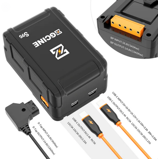 A ZGCINE V-Mount akkumulátor (16,8 V, 95 Wh) egy nagy teljesítményű, videóberendezésekhez tervezett energiaellátási megoldás. Többféle kimeneti lehetőséggel, köztük USB-C PD és D-Tap, sokoldalú és megbízható áramellátást biztosít a professzionális filmfelszerelésekhez.