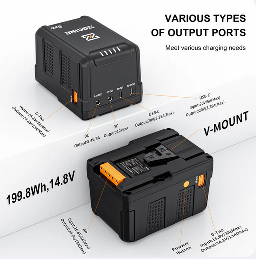 A ZGCINE 200Wh V-Mount akkumulátor egy sokoldalú és nagy teljesítményű áramforrás, amelyet filmesek, videósok és tartalomkészítők számára terveztek. Nagy, 200Wh kapacitásával hosszabb üzemidőt biztosít számos eszköz, például kamerák, monitorok, LED-lámpák és más eszközök számára.