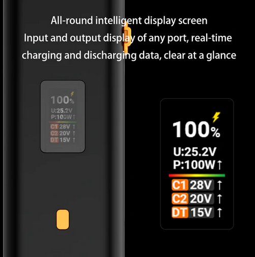 A ZG-H110 egy nagy teljesítményű és sokoldalú akkumulátor markolat, amelyet professzionális filmesek és videósok számára terveztek. Legfigyelemreméltóbb tulajdonsága az USB-C PD3.1 támogatás, amely hatalmas, 140 W teljesítményt biztosít mind bemenet, mind kimenet esetén, lehetővé téve a gyors töltést és a nagy teljesítményigényű eszközök táplálását. Az USB-C mellett 14,8 V és 22 V D-Tap kimenettel is rendelkezik, így rugalmas tápellátási lehetőségeket kínál számos filmkamerához, monitorhoz és egyéb berendezéshez. A markolat egy 0,96 hüvelykes, tiszta OLED kijelzővel van ellátva, amely egy pillanat alatt megjeleníti az alapvető információkat, például az áramellátás állapotát és a kimeneti adatokat. A maximális kompatibilitás és testreszabhatóság érdekében a ZG-H110 alján, tetején és oldalain 1/4 hüvelykes csavaros furatok találhatók, amelyek segítségével könnyen rögzíthető állványokra, keretekre és egyéb kiegészítő eszközökre. Összesen 110 Wh teljes teljesítményével hosszú távú áramforrást biztosít hosszabb felvételekhez. A termék kompakt méretei és könnyű kialakítása (1,3 lb) praktikus és hatékony kiegészítővé teszik bármely produkciós felszereléshez. A csomag tartalmazza a H100 akkumulátorfogantyút és egy USB-C–USB-C 240 W Emark kábelt.