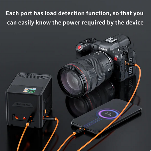 A 156Wh kapacitású és 14,8V-os kimeneti feszültségű X160-as akkumulátor ideális videokamerákhoz, kameramonitorokhoz, LED-videólámpákhoz és más eszközökhöz, és rendkívül sokoldalúan használható. Támogatja a PD gyorstöltést 100W-os bemenettel, így a teljes töltést mindössze 2,5 óra alatt éri el egy kompatibilis töltővel. Az akkumulátor kettős USB-C PD kimenettel rendelkezik, amely lehetővé teszi az egyidejű töltést sebességcsökkenés nélkül.