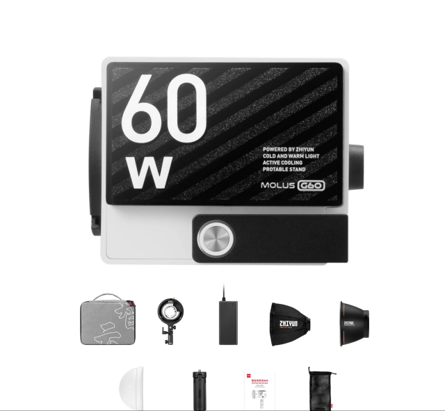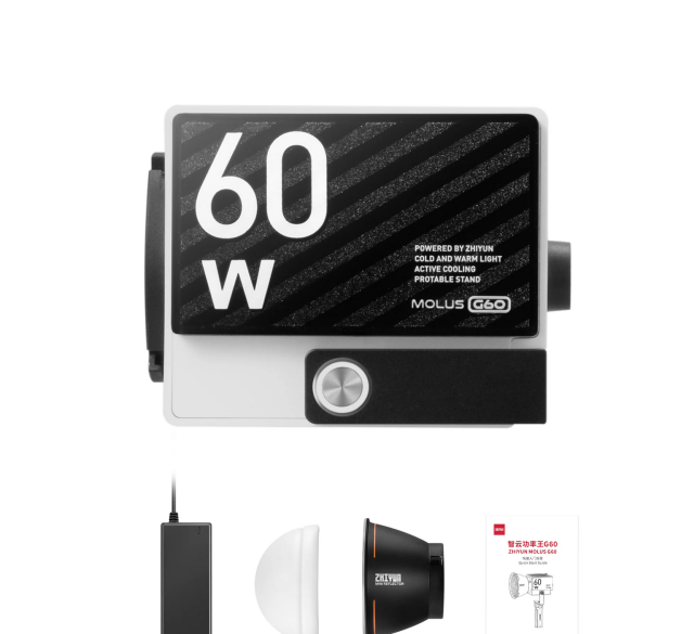 A MOLUS G60 a professzionális világítást sokkal egyszerűbbé teszi mindenki számára a 60W-os nagy teljesítményű, innovatív hűtési technológiával támogatott 60W-os kimeneti teljesítményével. Az univerzális filmfényként szolgáló G60 biztosítja, hogy alkotása többé nem korlátozódik a helyszínre, a térre és az időre.