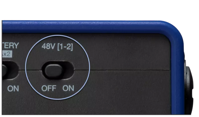 Itt aktiválhatja a +48 V-os fantomtápot a kondenzátor mikrofonokhoz.