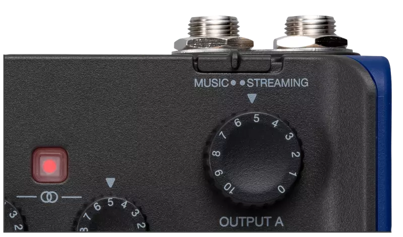 A Music/Streaming kapcsolóval nagyon egyszerűen válthat a felvétel és a streaming üzemmódok között. Music módban minden bemenetet külön-külön vezérelhet saját erősítésszabályozóval. Ezenkívül minden fejhallgató kimenetre más-más keveréket küldhet.