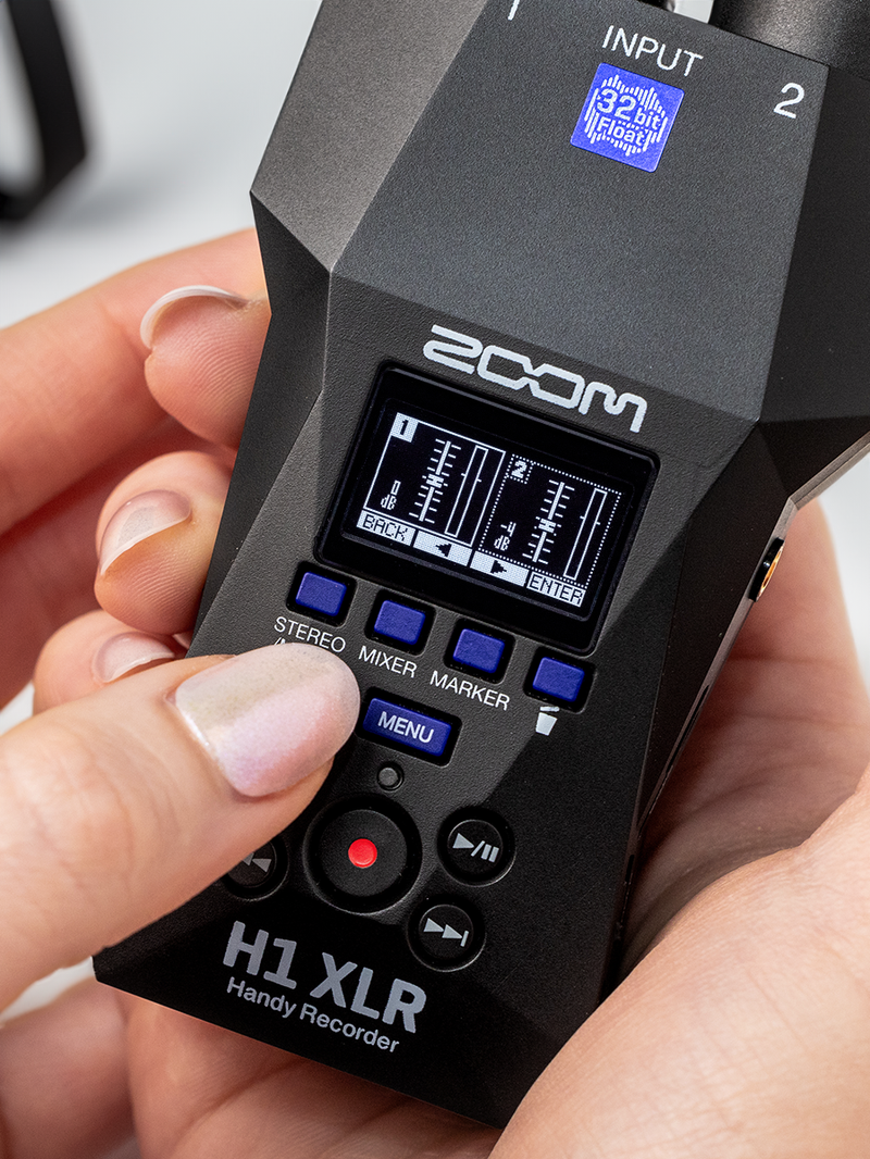 A nagy kontrasztú OLED-képernyő megkönnyíti a H1 XLR egyszerű kezelőfelületén való navigálást. a valós idejű hullámforma-kijelzőn láthatja a hangfelvételt felvétel közben.