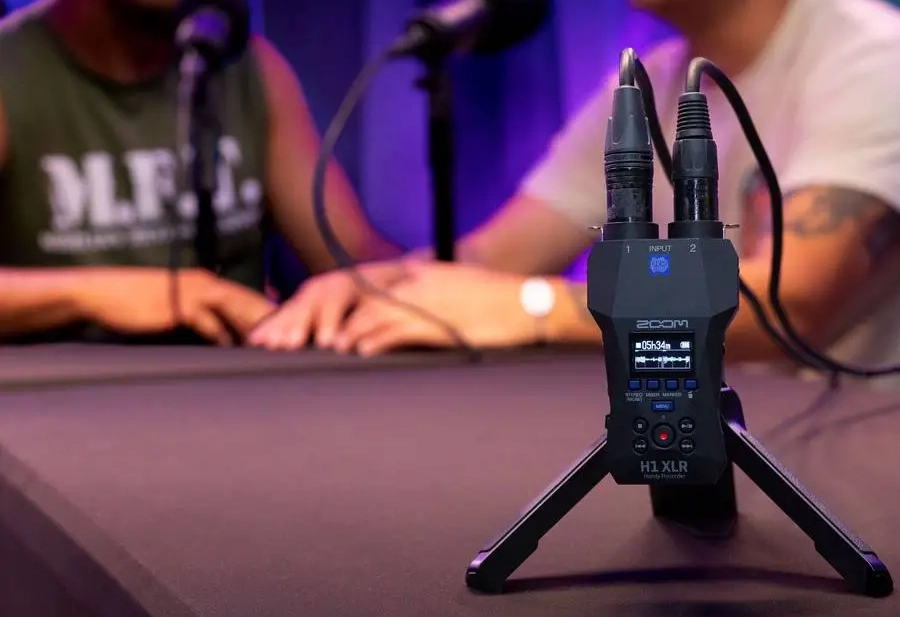 A H1 XLR készülékkel és két kedvenc mikrofonjával bárhol könnyen rögzíthet podcastokat.