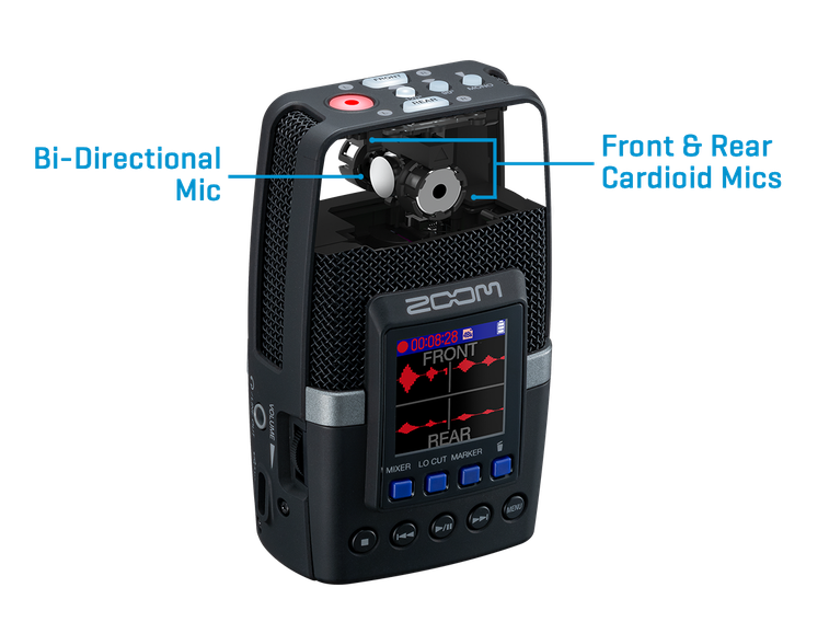 Két, előre és hátrafelé néző kardioid mikrofonnal és egy oldalra néző kétirányú mikrofonnal a H2essential lehetővé teszi, hogy minden felvételhez a tökéletes hangfelvételi mintázatot válassza.